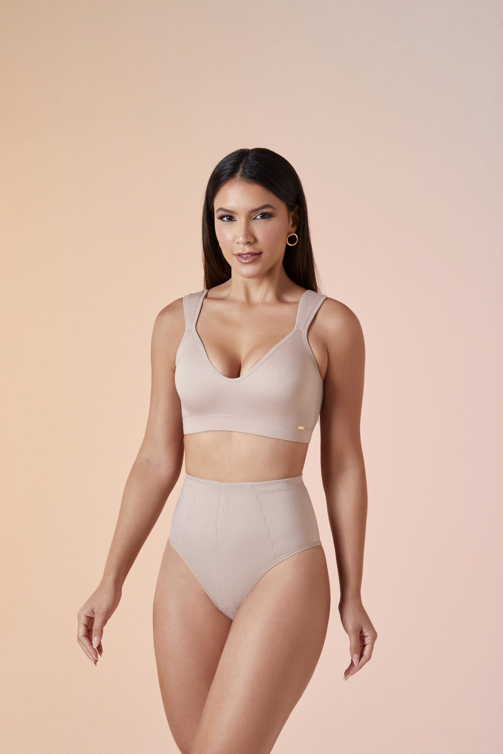 Esse sutiã é ideal para quem busca praticidade e bem-estar em todos os momentos. Com dupla camada de tecido e compressão média, ele oferece sustentação leve sem bojo e sem aro. As alças largas e confortáveis distribuem melhor o peso, evitando incômodos nos ombros.